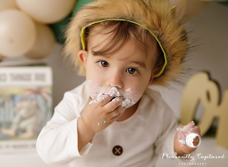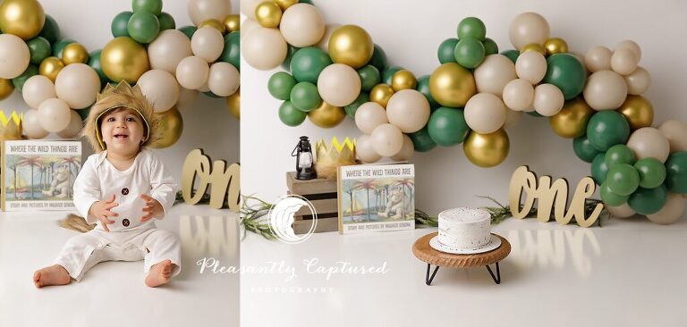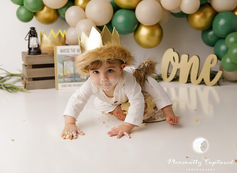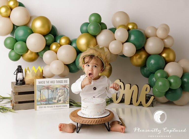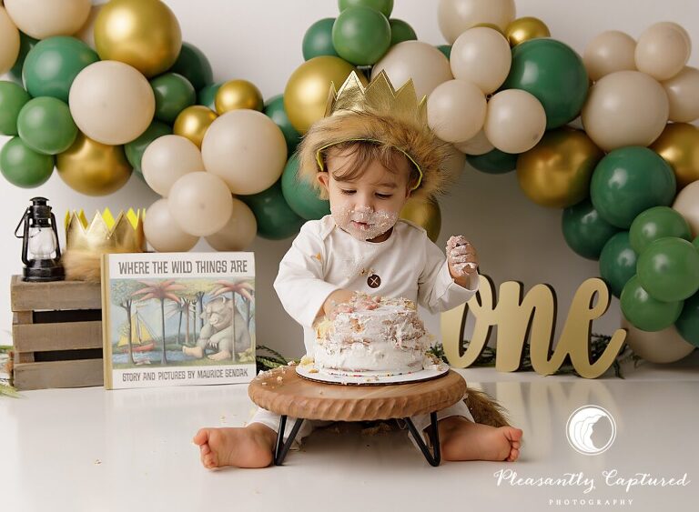 There’s something truly magical about watching a little one dive into their first birthday cake—especially when it’s styled with a touch of storybook wonder. For this sweet boy’s cake smash session, we took inspiration from a childhood classic: Where the Wild Things Are. From the moment his crown went on and his tiny “king of all wild things” outfit was buttoned up, we knew it was going to be a session to remember.
