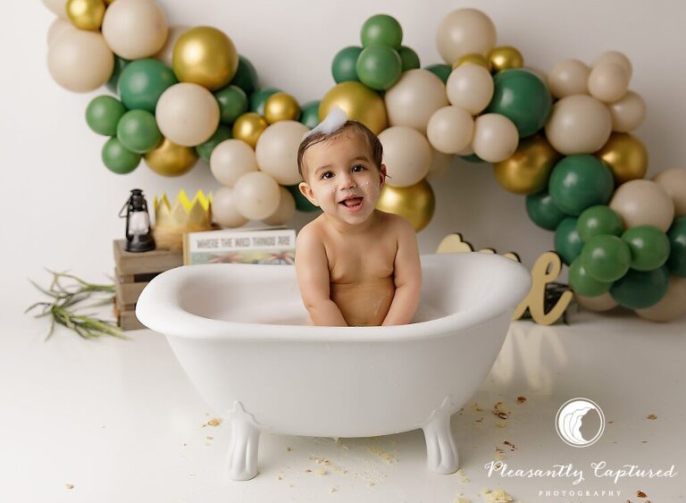 He wasted no time diving into his cake with joyful curiosity, and every messy, frosting-covered moment was picture-perfect. After the smash, we wrapped up the session with a warm bubble bath—because even wild things need to get cleaned up! He splashed, giggled, and gave us even more adorable moments to capture.